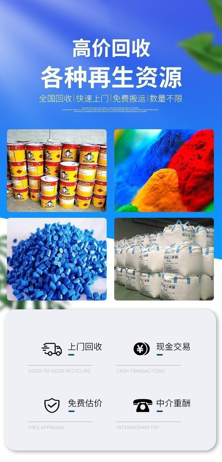 在线回收轻工涂料 收购外墙仿石涂料 处理颜料蓝 诚信合作